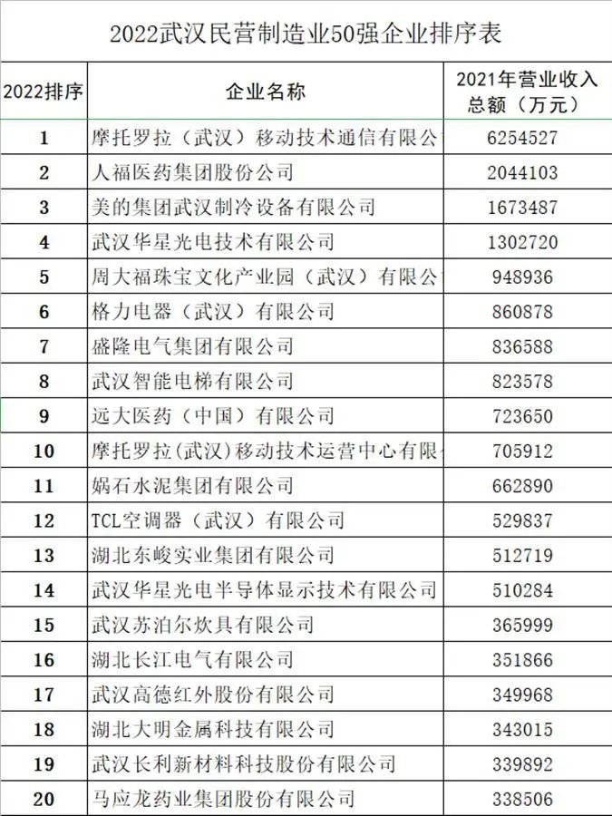 該排序榜由相關市直部門共同組織,在尊重企業自主申報原則的基礎上,以2021年企業營業收入總額為依據,由武漢市工商聯完成。